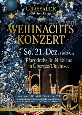 Es ist nicht nur Tradition sondern schon fast eine Institution: Das Weihnachtskonzert des Grassauer Blechbläserensembles in der Pfarrkirche St. Nikolaus. Es findet in diesem Jahr am Sonntag, den 21. Dezember um 16 Uhr statt.